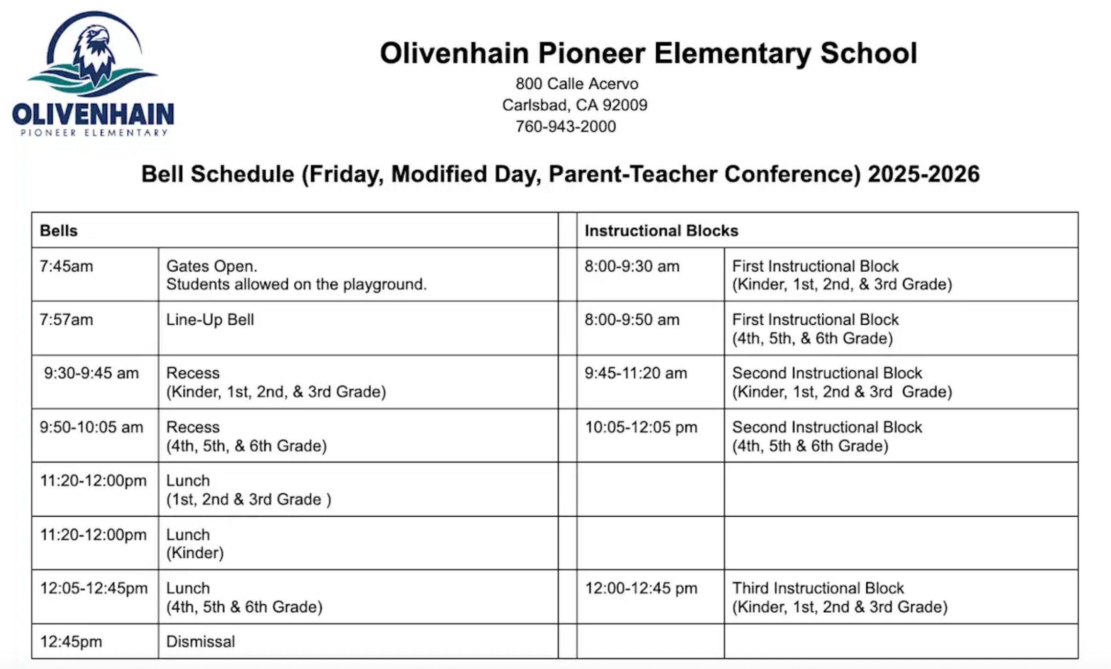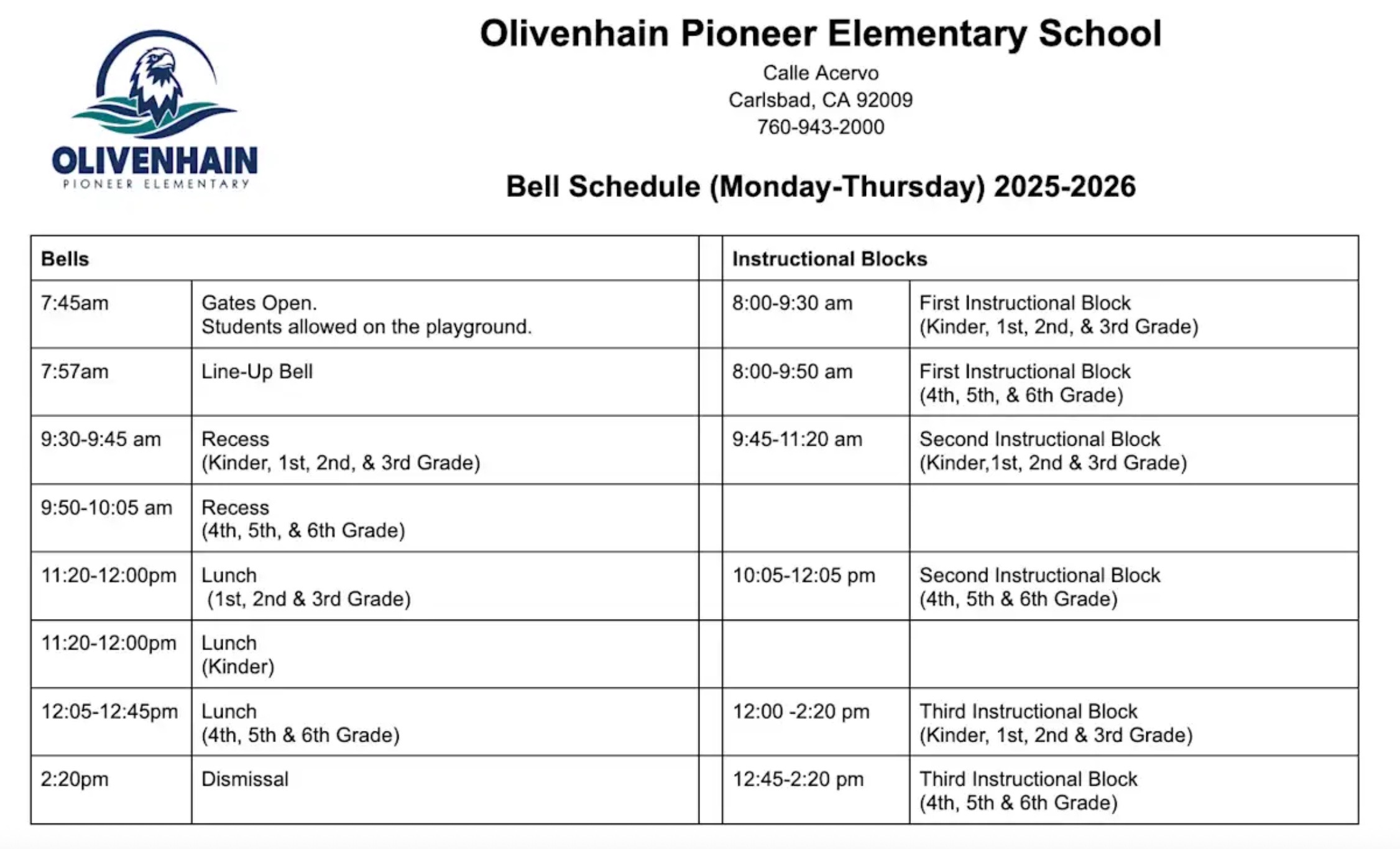 2025-2026 Bell Schedule