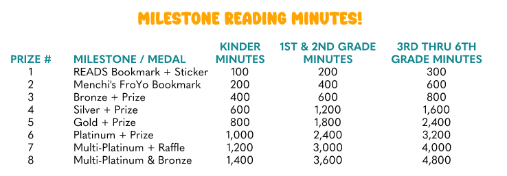 • Log your minutes ONLINE – log each week’s minutes online. You will receive an individual email with your student ID and link to log and watch your student and classroom minutes soar! Please remember to log your minutes each weekend!